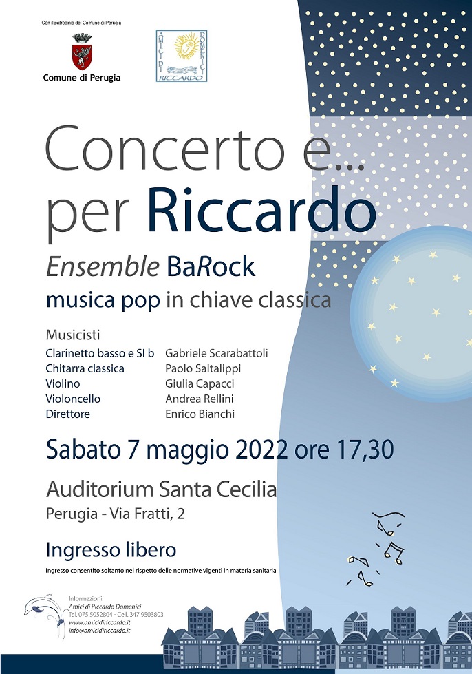 Sabato 07 maggio p.v. nel suggestivo Auditorium di Santa Cecilia in Perugia l’Ensemble BaRock terrà il “Concerto e …per Riccardo” dedicato alla memoria di Riccardo e al suo amore per la musica.