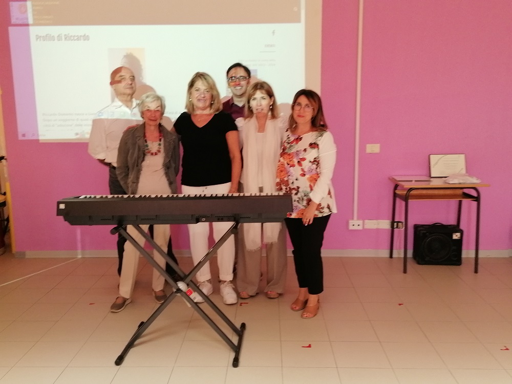 A seguito della donazione di una tastiera elettronica Yamaha P45 con supporto, effettuata dalla Associazione al corso a indirizzo musicale dell’Istituto Omnicomprensivo G.Mazzini di Magione (Pg), il Dirigente Scolastico Dott.ssa Enza Ingargiola e i docenti di Strumento Musicale: Susanna Casella, Adolfo Giuseppe Giuliani, Gabriele Scarabattoli e Maria Rita Tardioli, lo scorso giovedì 28 settembre hanno incontrato il Presidente della associazione Signora Orietta Dolcetti Domenici durante un a piccola quanto piacevole cerimonia di ringraziamento per lo strumento ricevuto e messo a disposizione degli studenti.